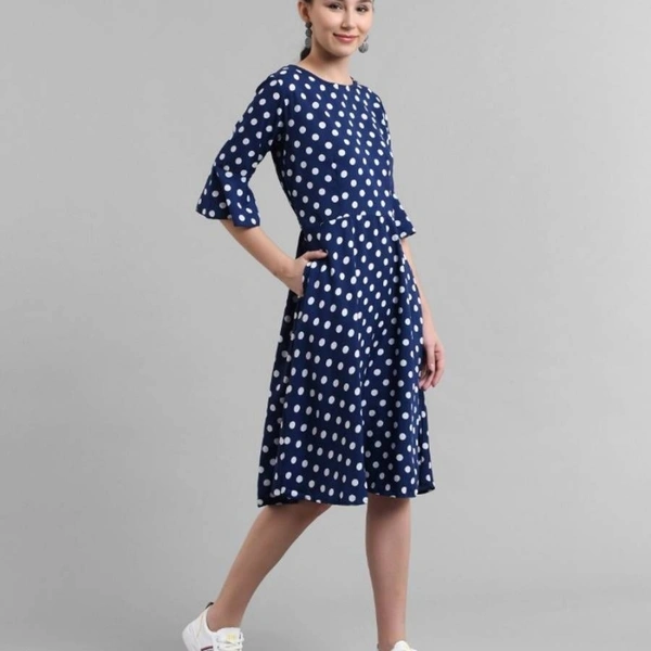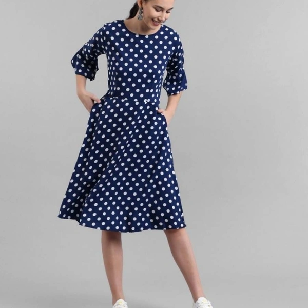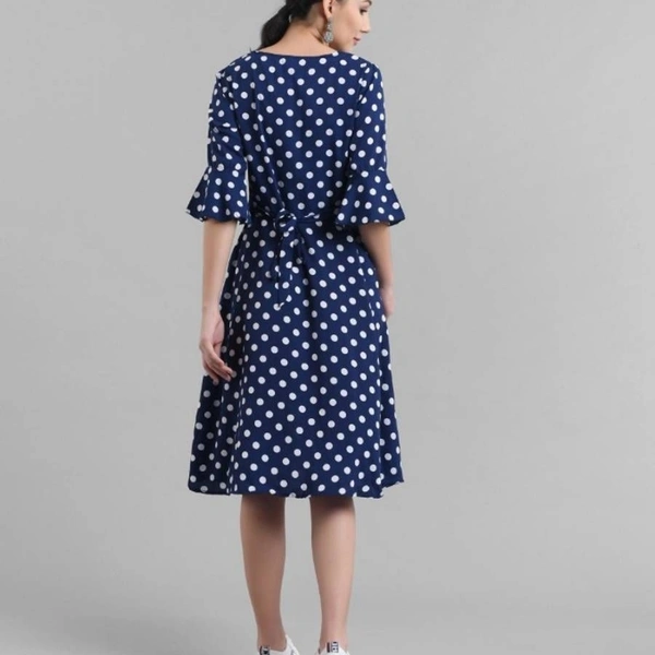 Women Nevy Blue Printed Polka Dot Midi Dress